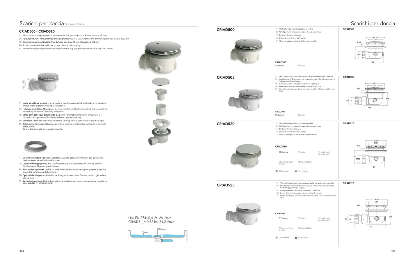 IT Piletta sifonata per piatto doccia ispezionabile, uscita semisferica snodata