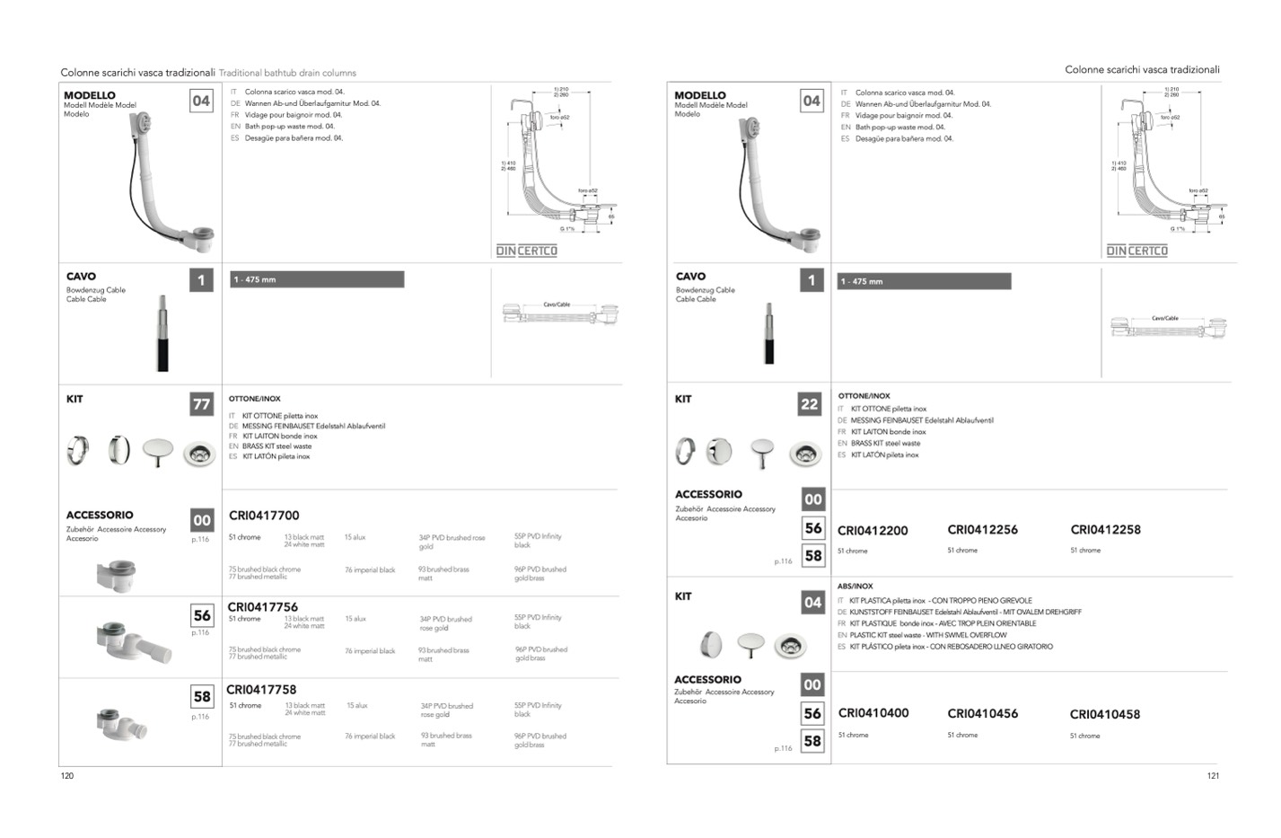 Colonne scarichi vasca tradizionali Traditional bathtub drain columns