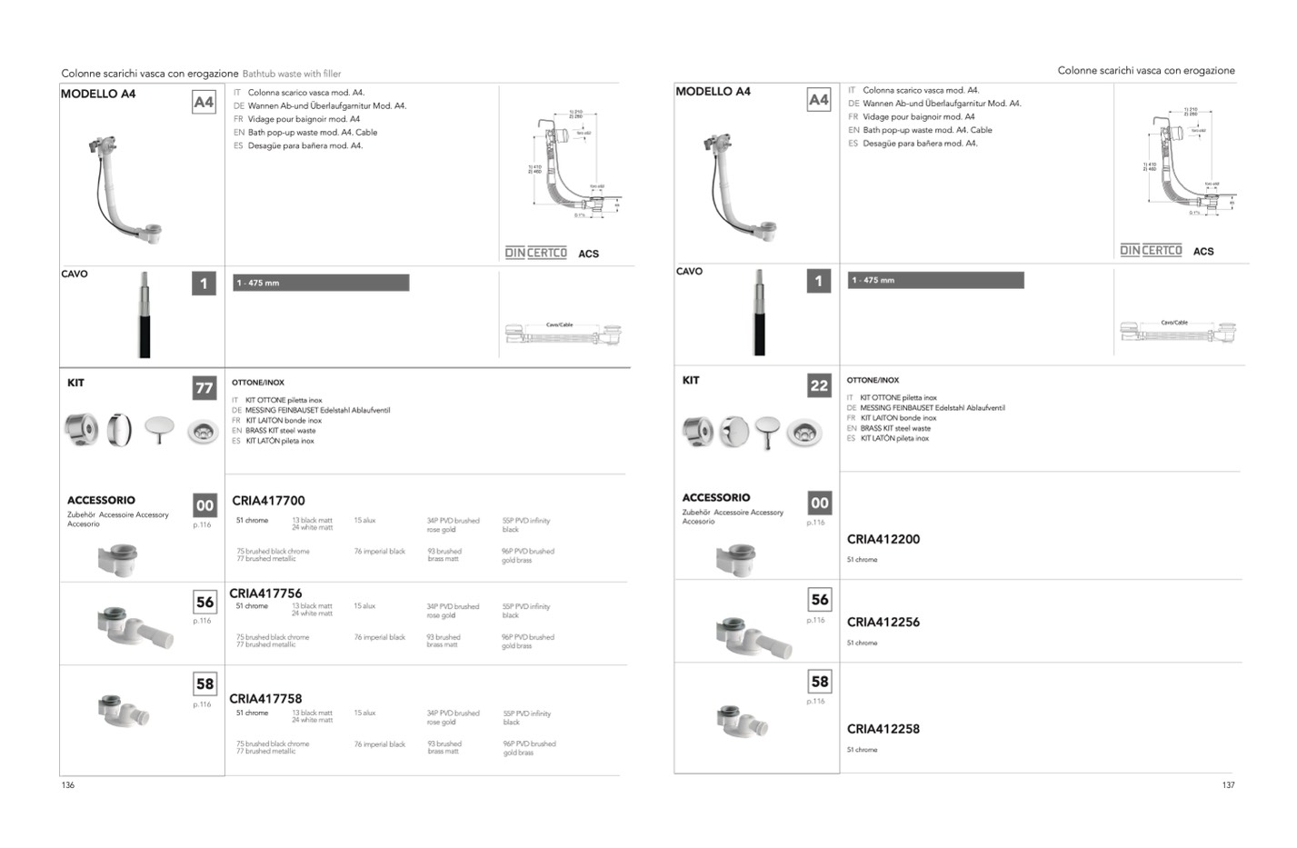 IT Colonna scarico vasca mod. A4.