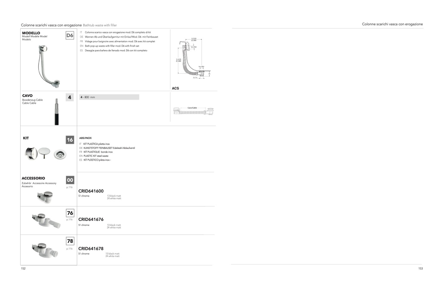 IT Colonna scarico vasca con erogazione mod. D6 completo di kit