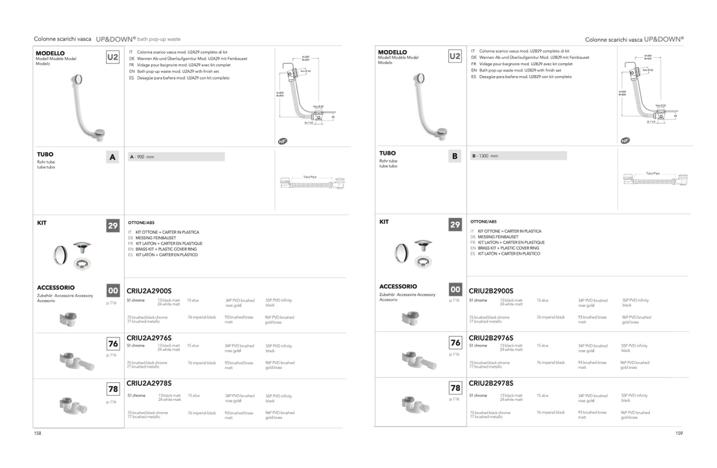 IT Colonna scarico vasca mod. U2A29 completo di kit