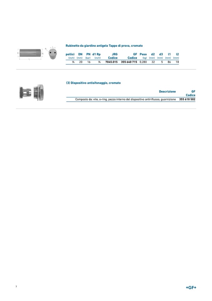 Composto da: vite, o-ring, pezzo interno del dispositivo antiriflusso, guarnizione