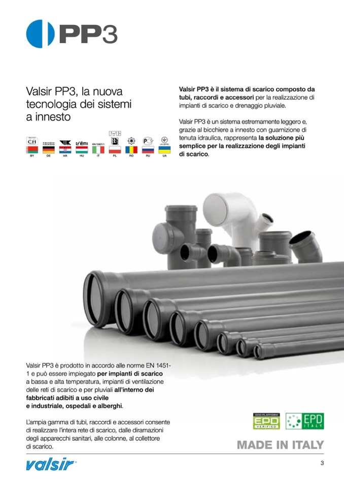 Valsir PP3 è prodotto in accordo alle norme EN 1451-