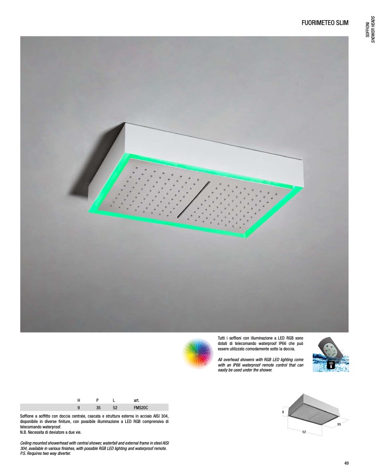 All overhead showers with RGB LED lighting come