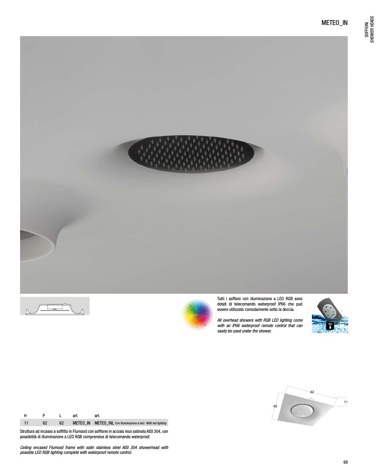 All overhead showers with RGB LED lighting come