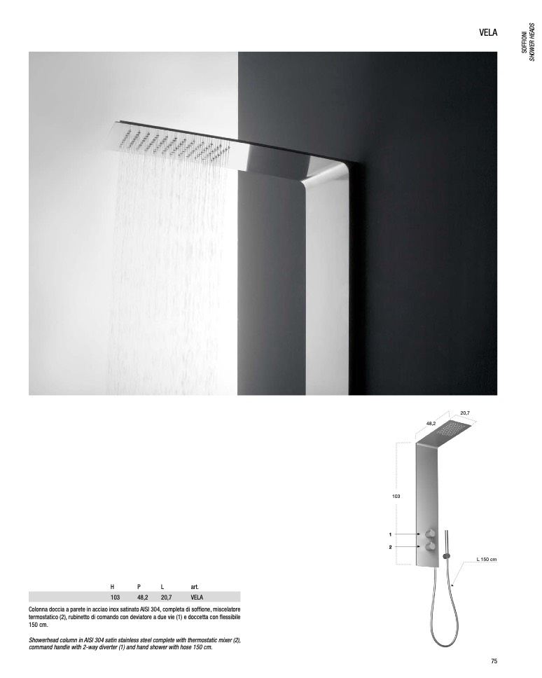 Showerhead column in AISI 304 satin stainless steel complete with thermostatic mixer (2),