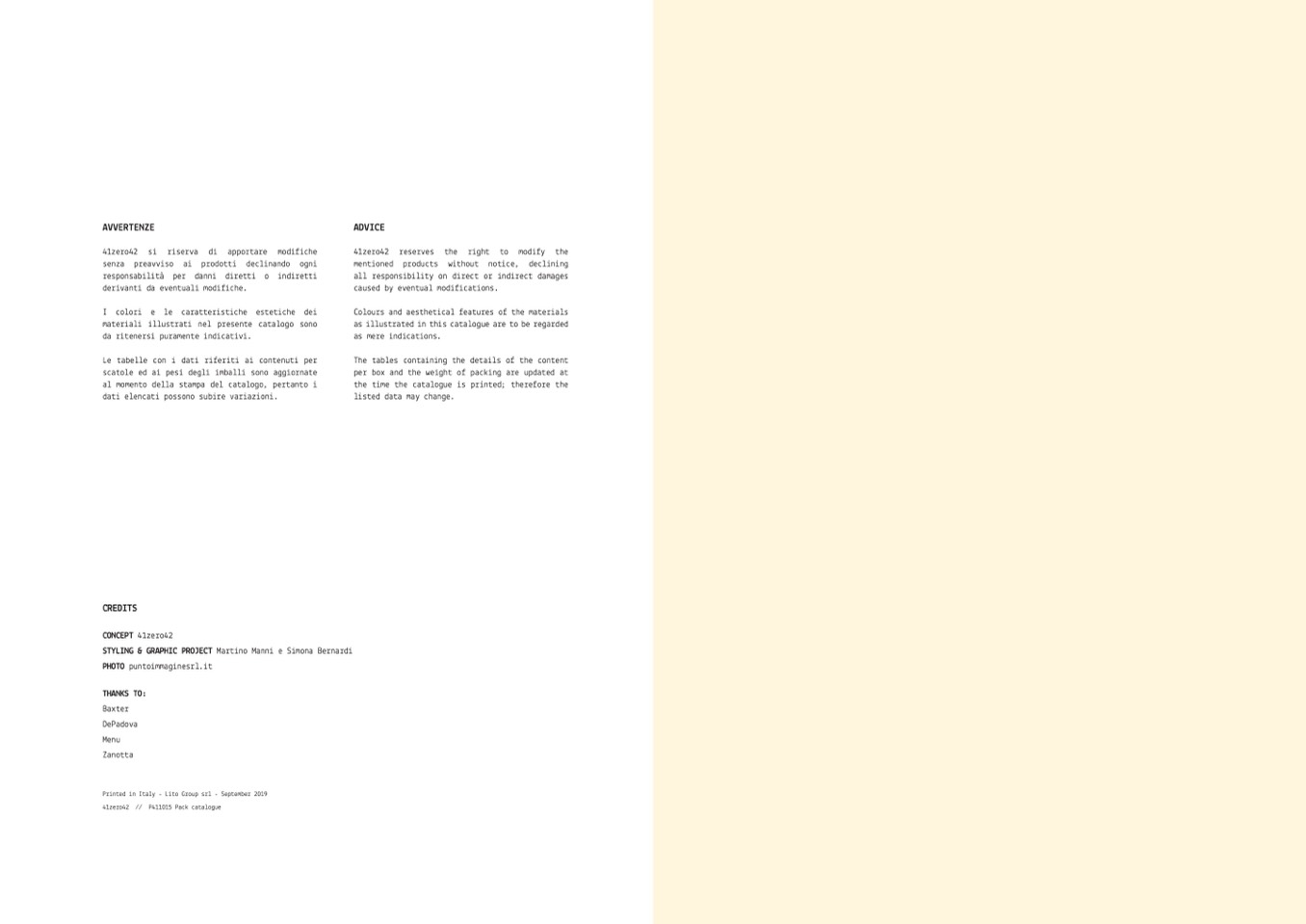 41zero42 si riserva di apportare modifiche