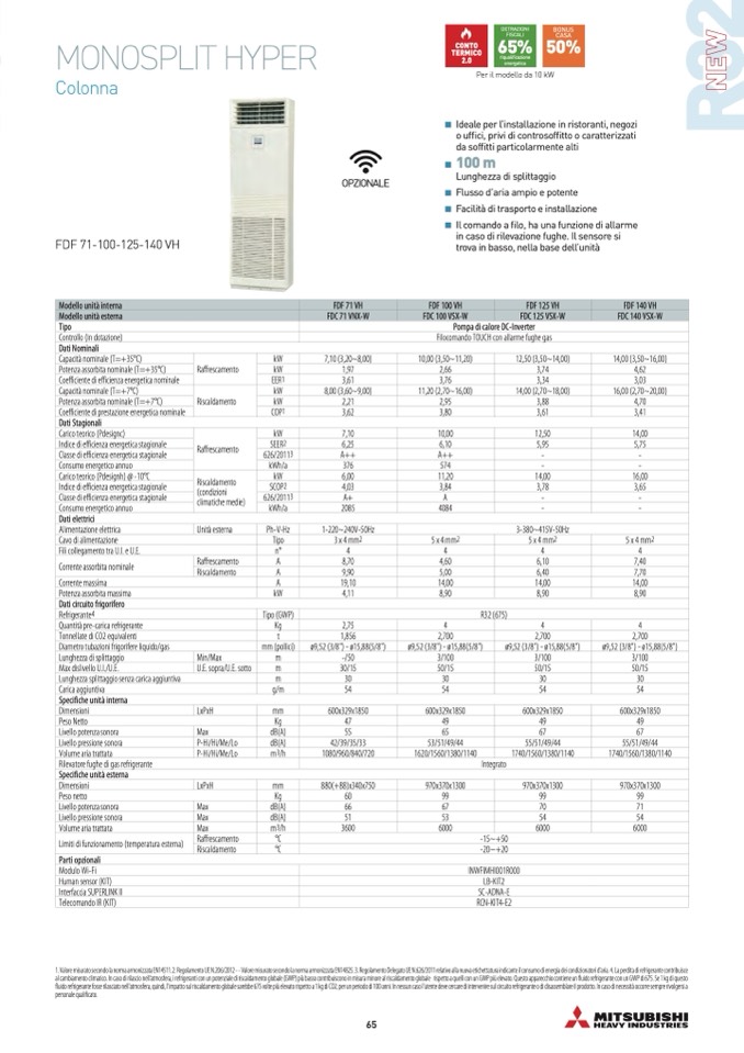 1. Valore misurato secondo la norma armonizzata EN14511. 2. Regolamento UE N.206/2012 - - Valore misurato secondo la norma armonizzata EN14825. 3. Regolamento Delegato UE N.626/2011 relativo alla nuova etichettatura indicante il consumo di energia dei condizionatori d'aria. 4. La perdita di refrigerante contribuisce