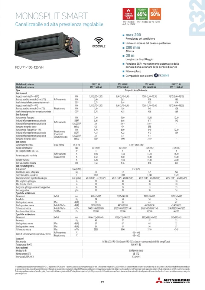 1. Valore misurato secondo la norma armonizzata EN14511. 2. Regolamento UE N.206/2012 - - Valore misurato secondo la norma armonizzata EN14825. 3. Regolamento Delegato UE N.626/2011 relativo alla nuova etichettatura indicante il consumo di energia dei condizionatori d'aria. 4. La perdita di refrigerante contribuisce