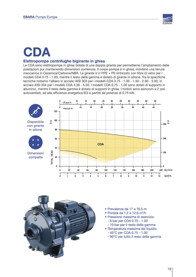 Le CDA sono elettropompe in ghisa dotate di una doppia girante per permetterne l’ampliamento delle