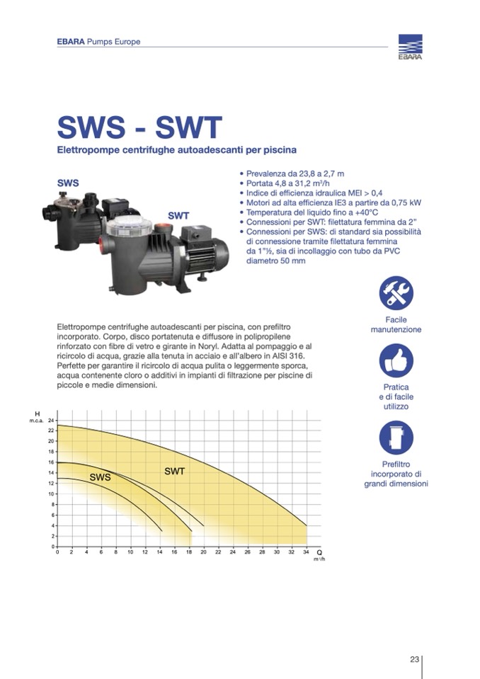 • Prevalenza da 23,8 a 2,7 m