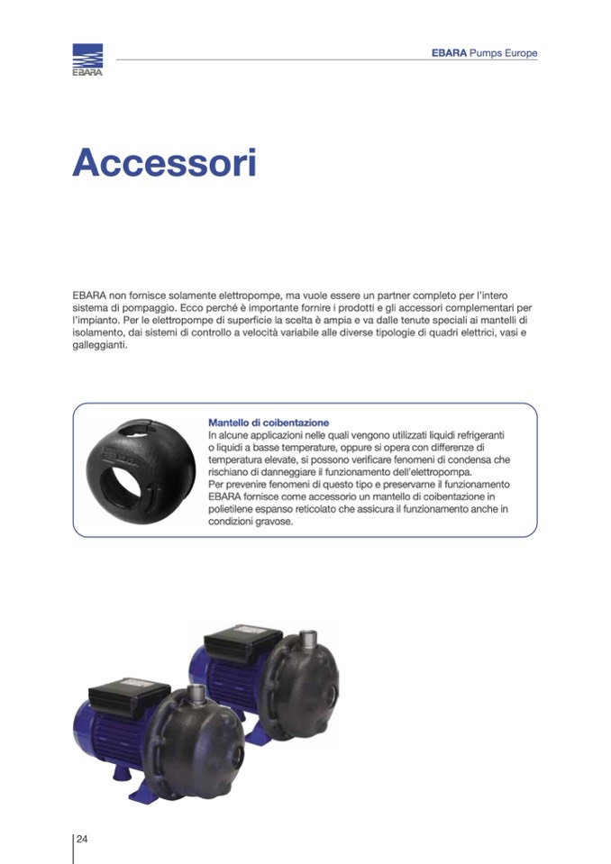 EBARA fornisce come accessorio un mantello di coibentazione in