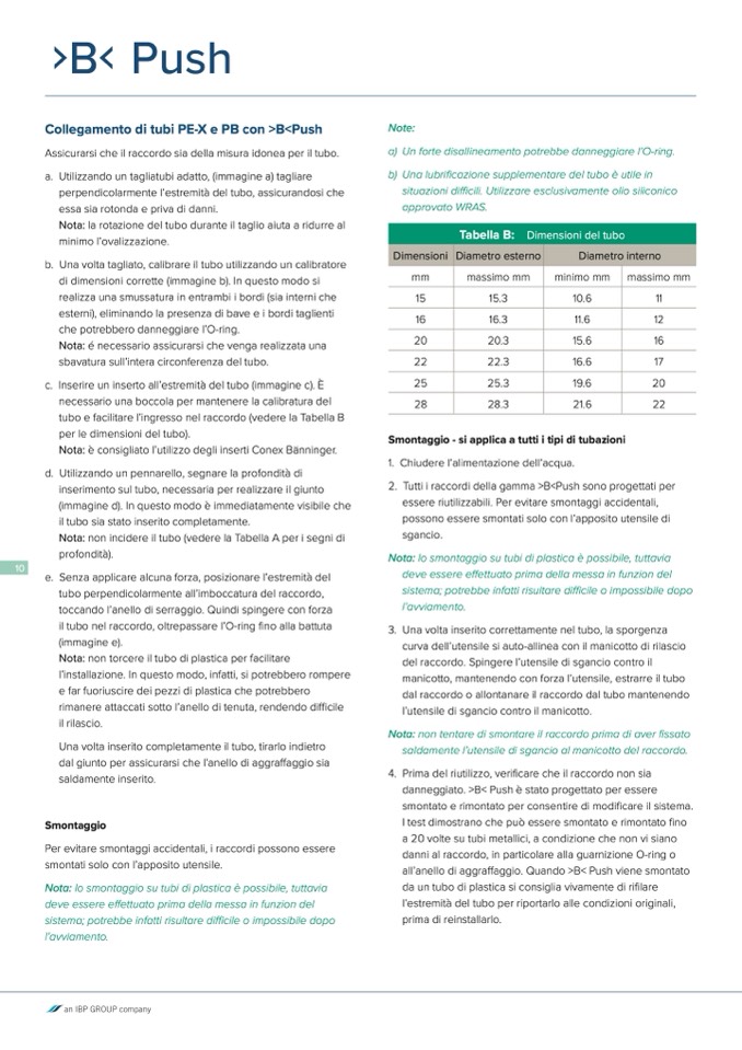 Tutti i raccordi della gamma >B<Push sono progettati per