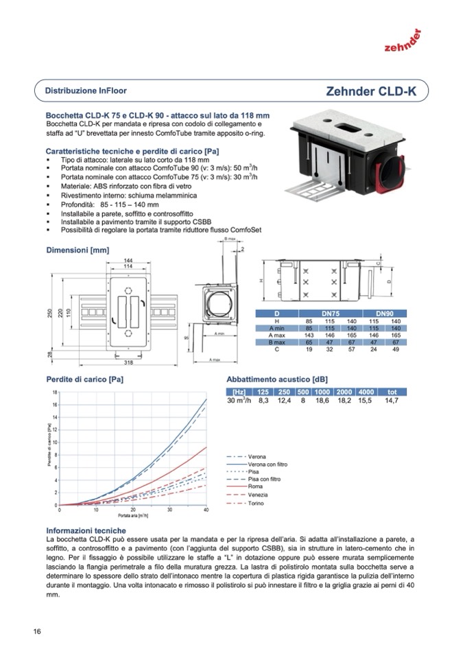 Portata nominale con attacco ComfoTube 75 (v: 3 m/s): 30 m