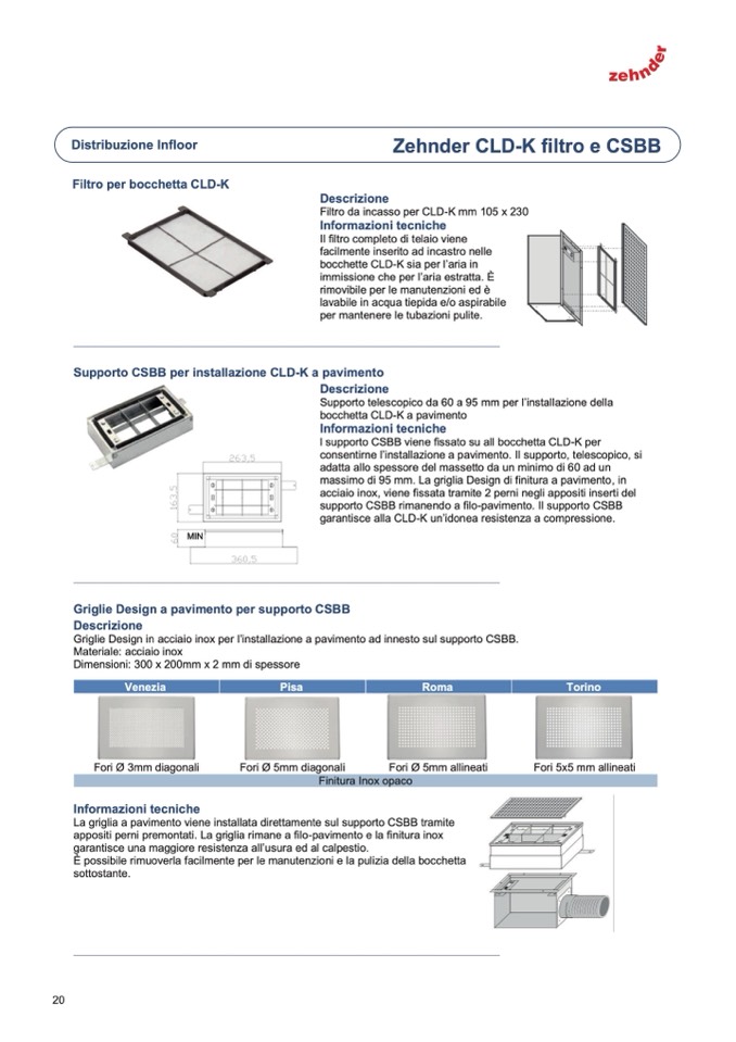 La griglia a pavimento viene installata direttamente sul supporto CSBB tramite