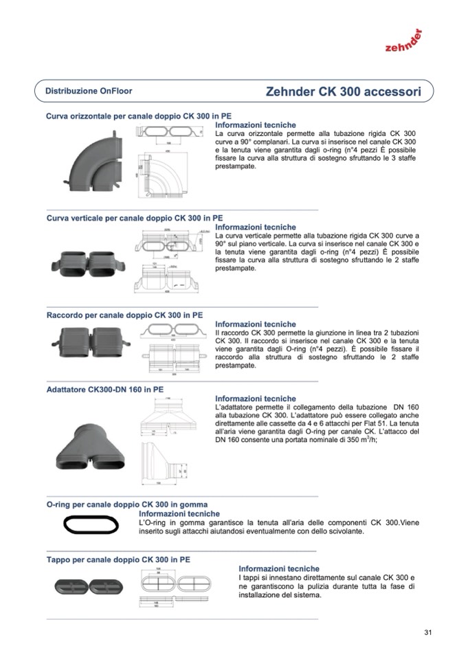 90° sul piano verticale. La curva si inserisce nel canale CK 300 e