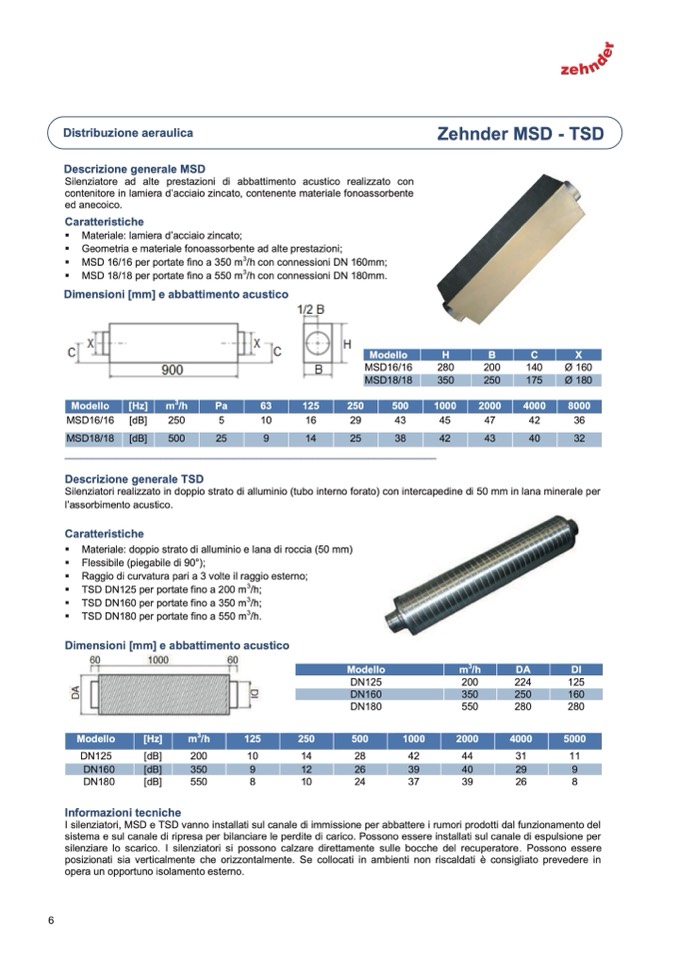 I silenziatori, MSD e TSD vanno installati sul canale di immissione per abbattere i rumori prodotti dal funzionamento del