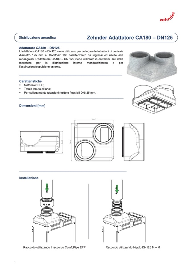 rettangolari. L’adattatore CA180 – DN 125 viene utilizzato in entrambi i lati della