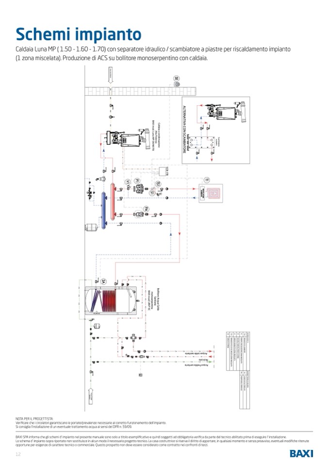 BAXI SPA informa che gli schemi d' impianto nel presente manuale sono solo a titolo esemplificativo e quindi soggetti ad obbligatoria verifica da parte del tecnico abilitato prima di eseguire l' installazione.