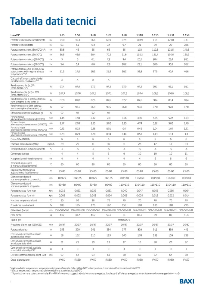 *** i prodotti con una potenza nominale (Pn)>70kW non sono soggetti ad etichettatura energetica. La classe di efficienza energetica in riscaldamento ha un range da A+++ a D