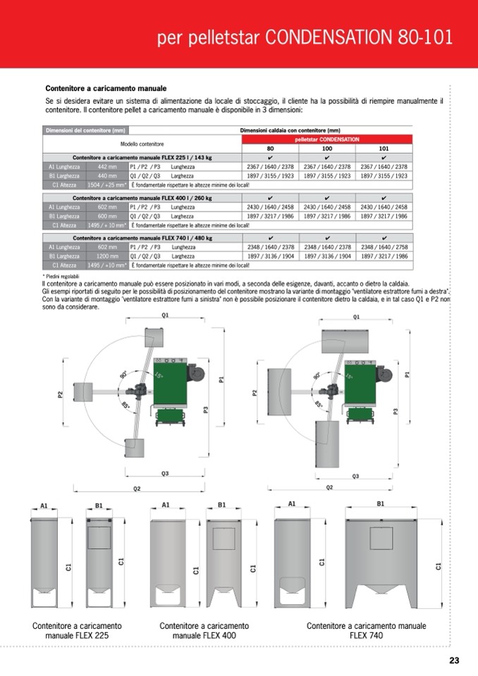 contenitore. Il contenitore pellet a caricamento manuale è disponibile in 3 dimensioni: