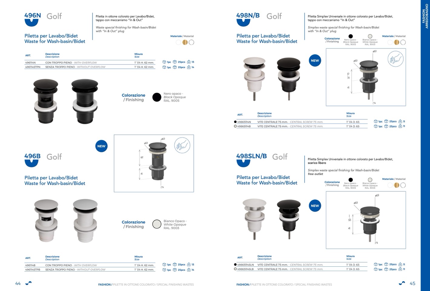 Piletta Simplex Universale in ottone colorato per Lavabo/Bidet,