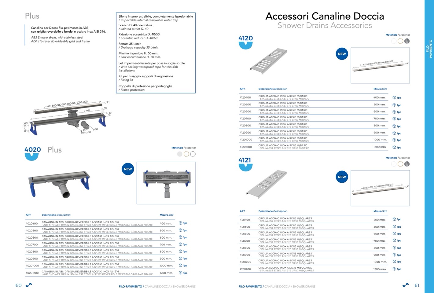 FILO-PAVIMENTO / CANALINE DOCCIA / SHOWER DRAINS