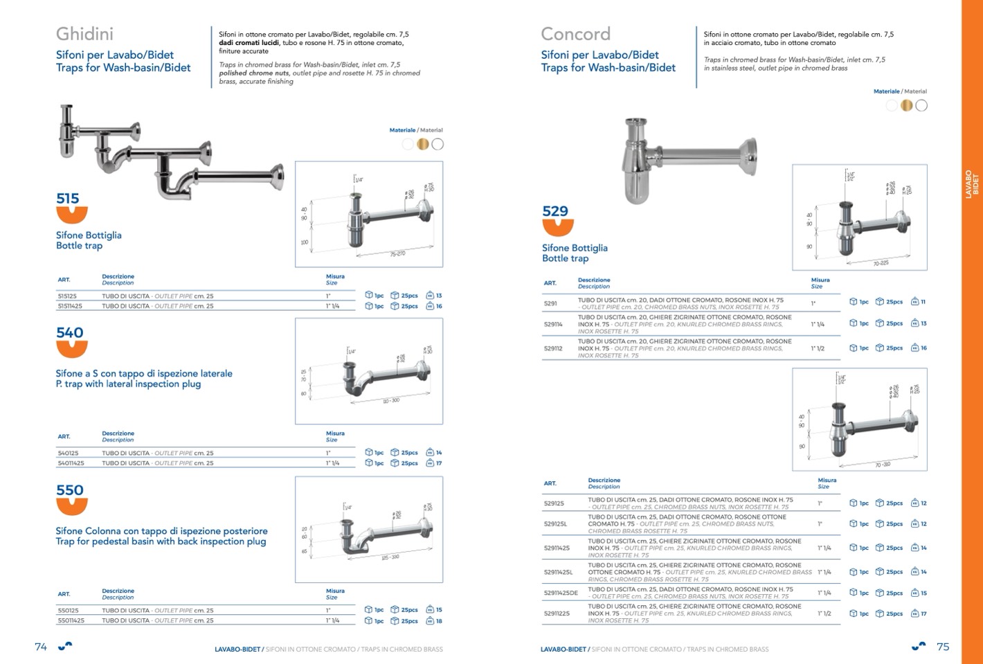 LAVABO-BIDET / SIFONI IN OTTONE CROMATO / TRAPS IN CHROMED BRASS