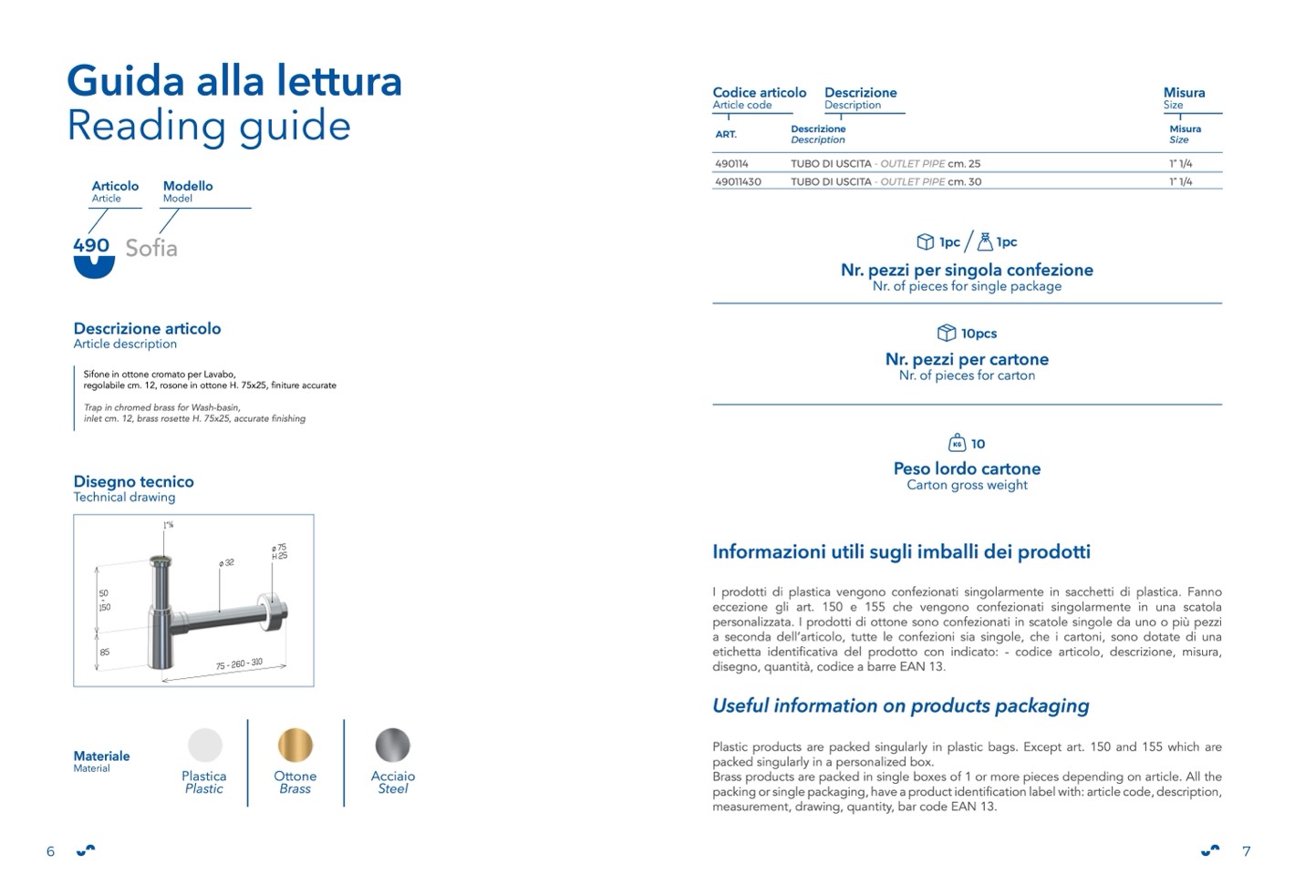 Brass products are packed in single boxes of 1 or more pieces depending on article. All the