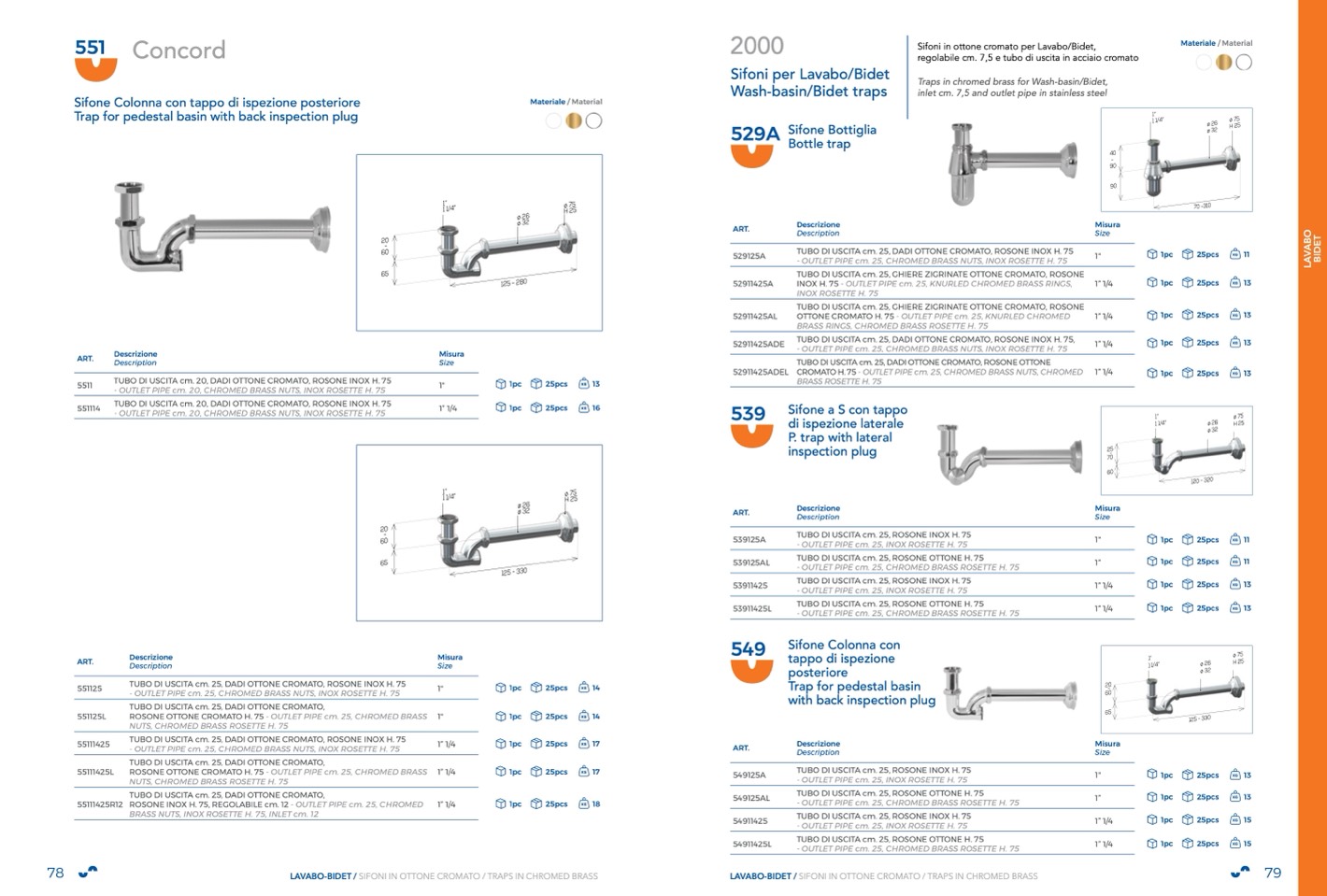 LAVABO-BIDET / SIFONI IN OTTONE CROMATO / TRAPS IN CHROMED BRASS