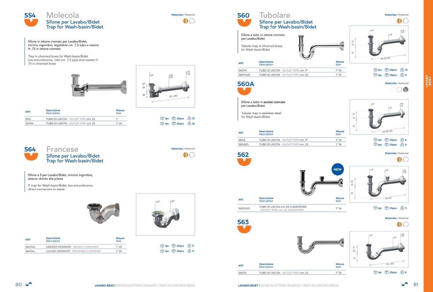 LAVABO-BIDET / SIFONI IN OTTONE CROMATO / TRAPS IN CHROMED BRASS