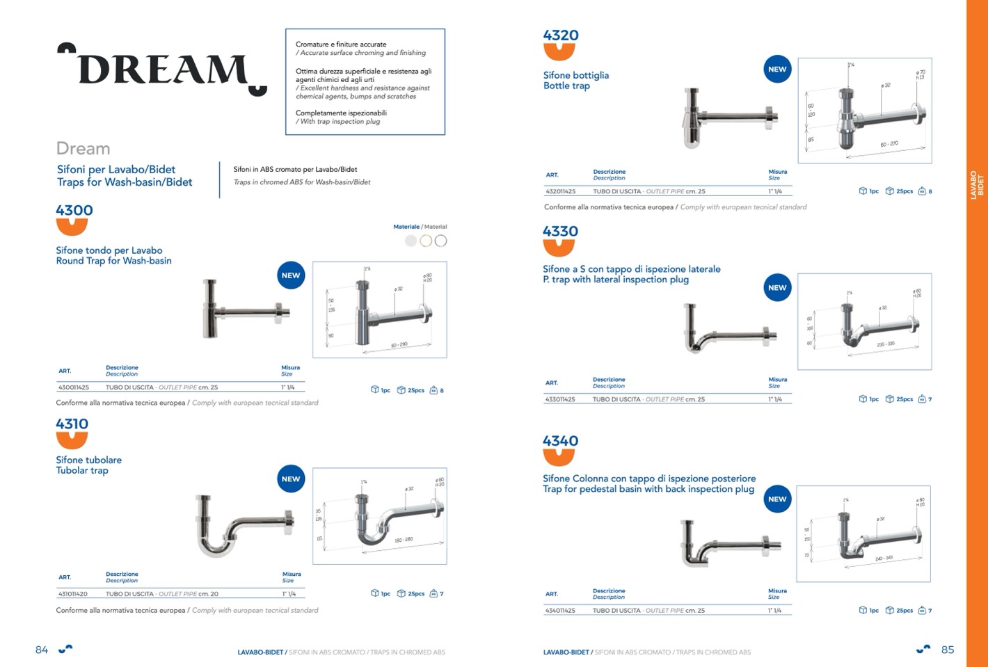 LAVABO-BIDET / SIFONI IN ABS CROMATO / TRAPS IN CHROMED ABS