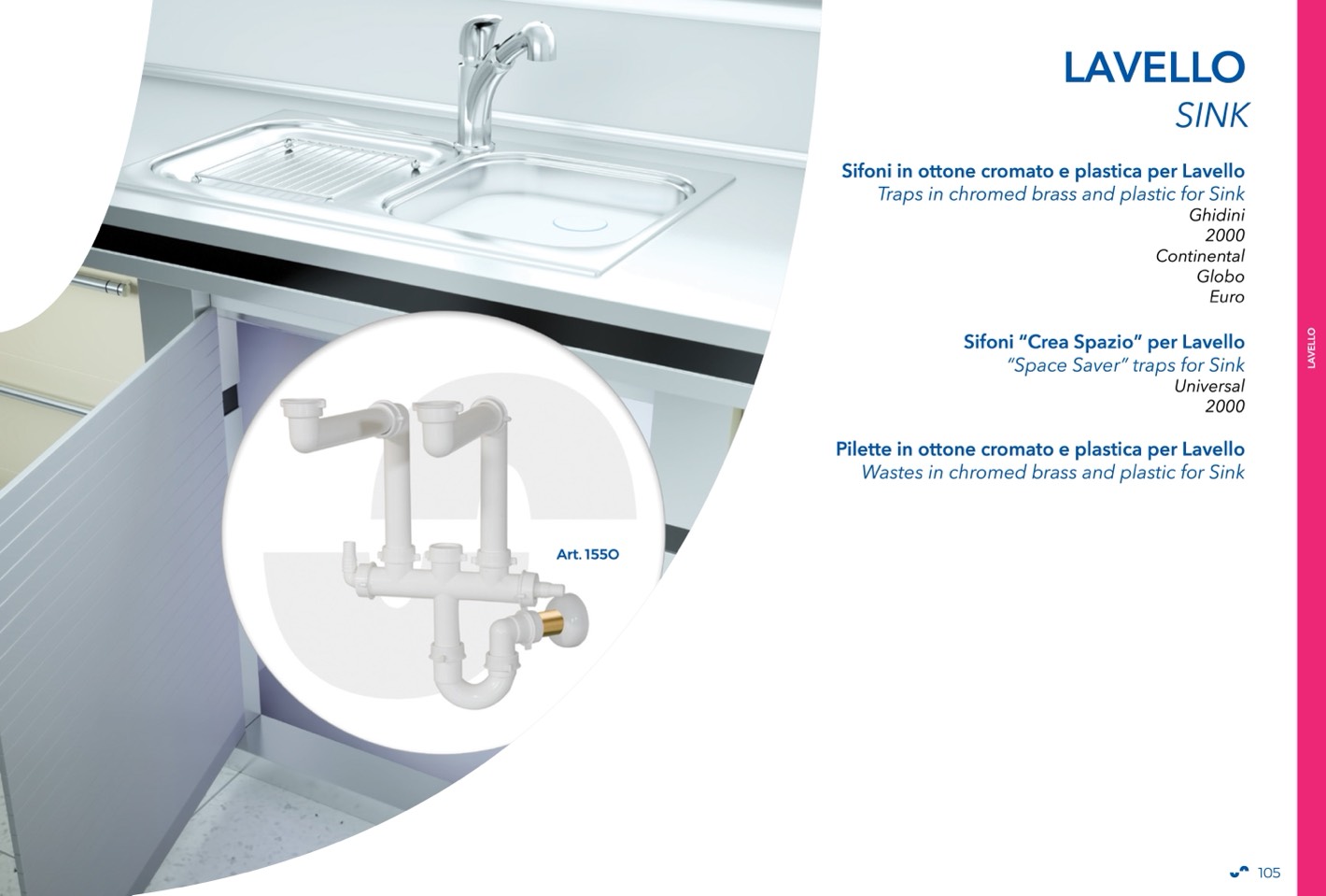 Sifoni in ottone cromato e plastica per Lavello