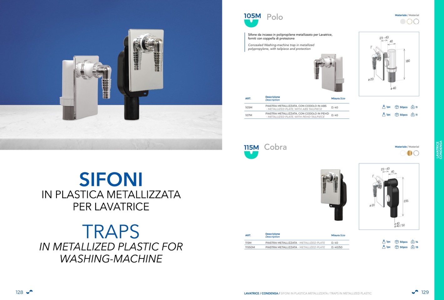 LAVATRICE / CONDENSA / SIFONI IN PLASTICA METALLIZZATA / TRAPS IN METALLIZED PLASTIC