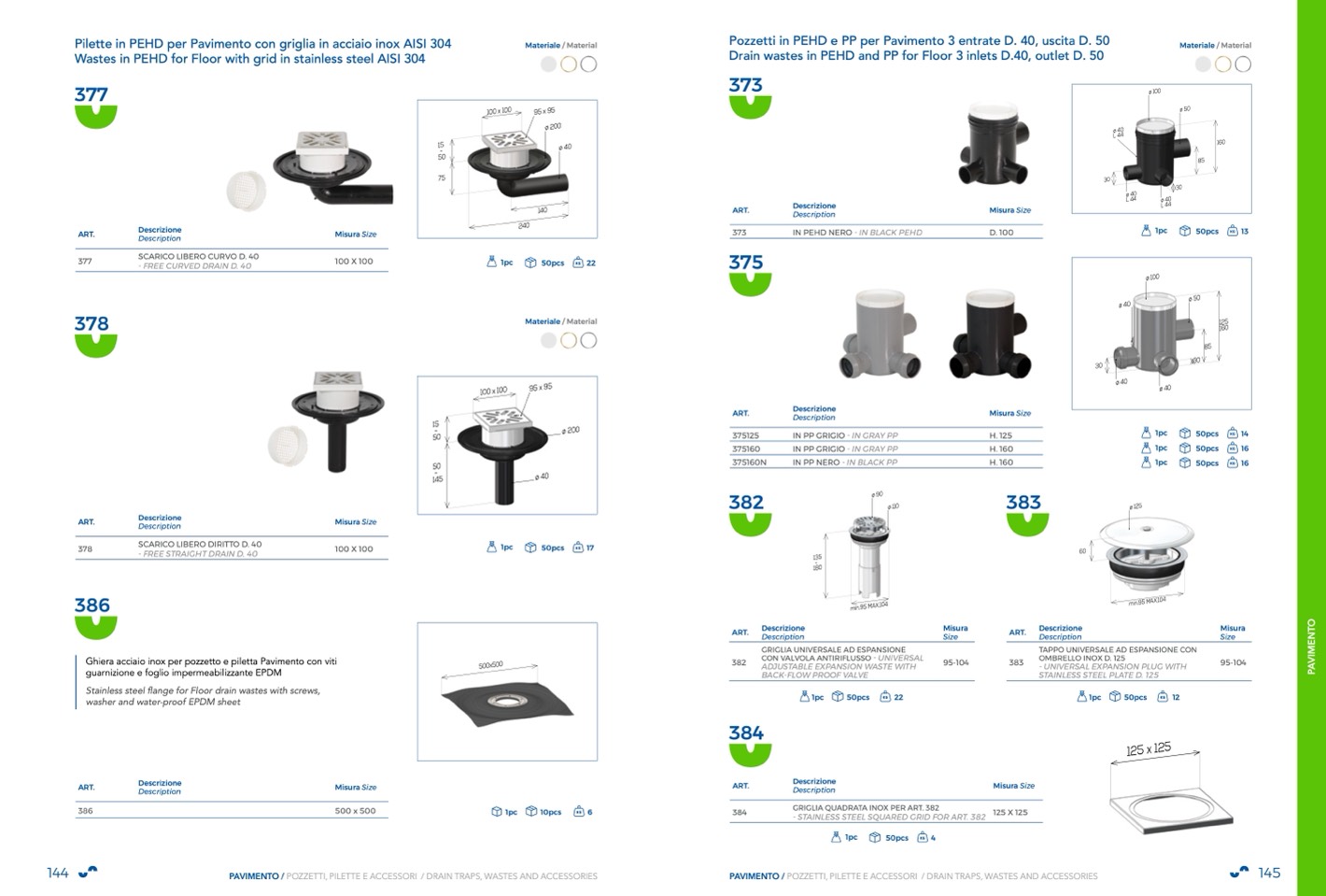 PAVIMENTO / POZZETTI, PILETTE E ACCESSORI / DRAIN TRAPS, WASTES AND ACCESSORIES