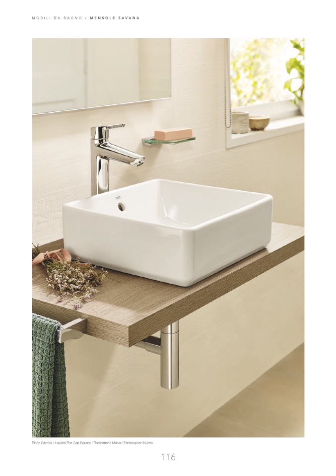 Piano Savana / Lavabo The Gap Square / Rubinetteria Malva / Portasapone Nuova