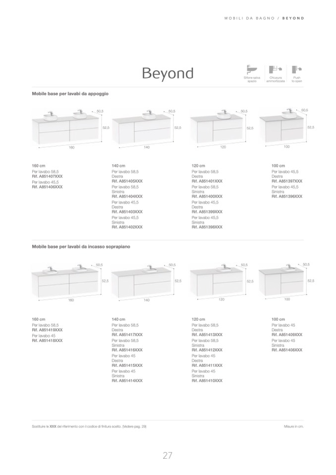Sostituire le XXX del riferimento con il codice di finitura scelto . (Vedere pag . 29)