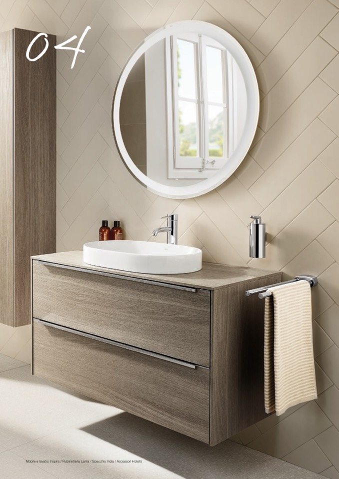 Mobile e lavabo Inspira / Rubinetteria Lanta / Specchio Iridia / Accessori Hotel’s