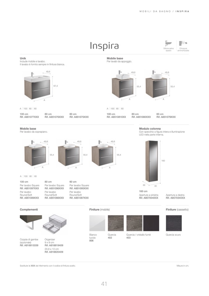 Sostituire le XXX del riferimento con il codice di finitura scelto .