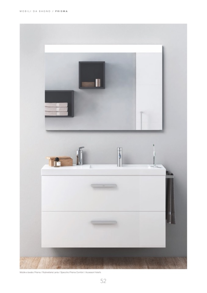 Mobile e lavabo Prisma / Rubinetteria Lanta / Specchio Prisma Comfort / Accessori Hotel’s