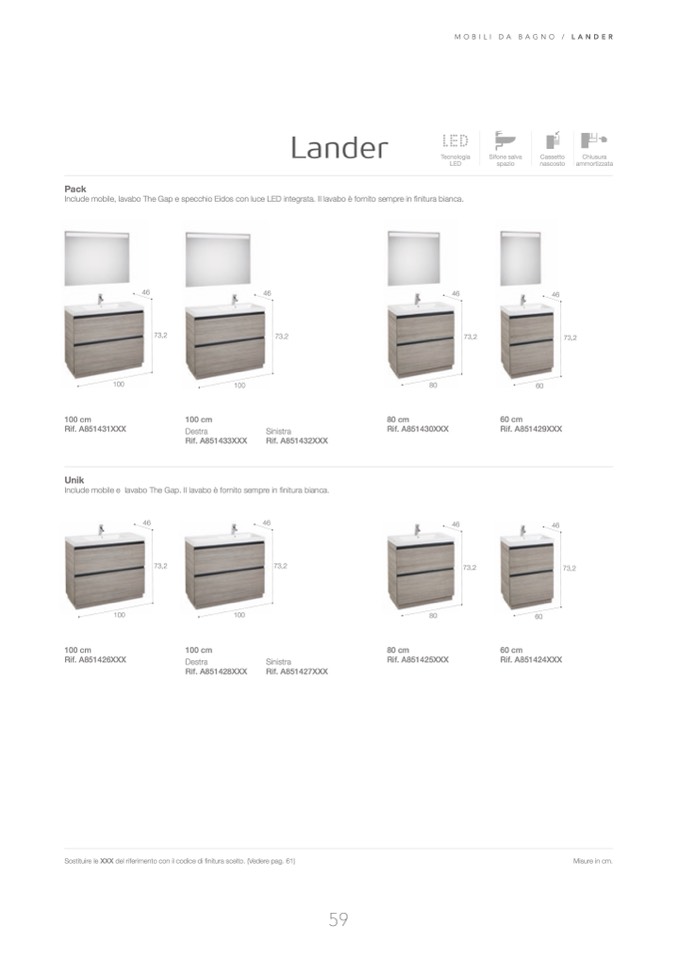 Sostituire le XXX del riferimento con il codice di finitura scelto . (Vedere pag . 61)