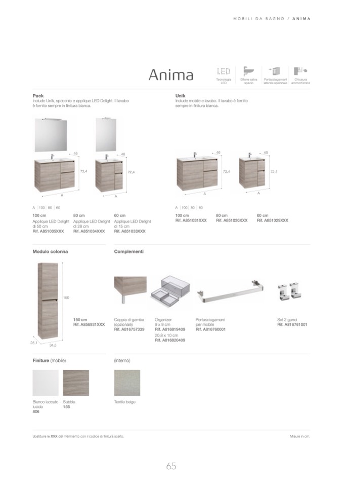 Sostituire le XXX del riferimento con il codice di finitura scelto .