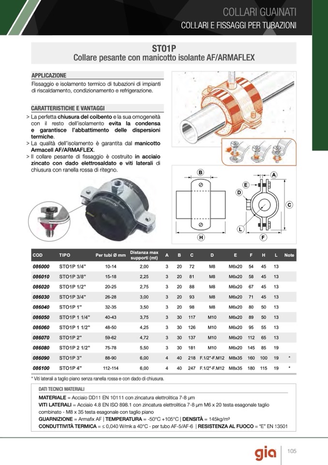 CONDUTTIVITÀ TERMICA = ≤ 0,040 W/mk a 40°C - per tubo AF-5/AF-6 | RESISTENZA AL FUOCO = “E” EN 13501