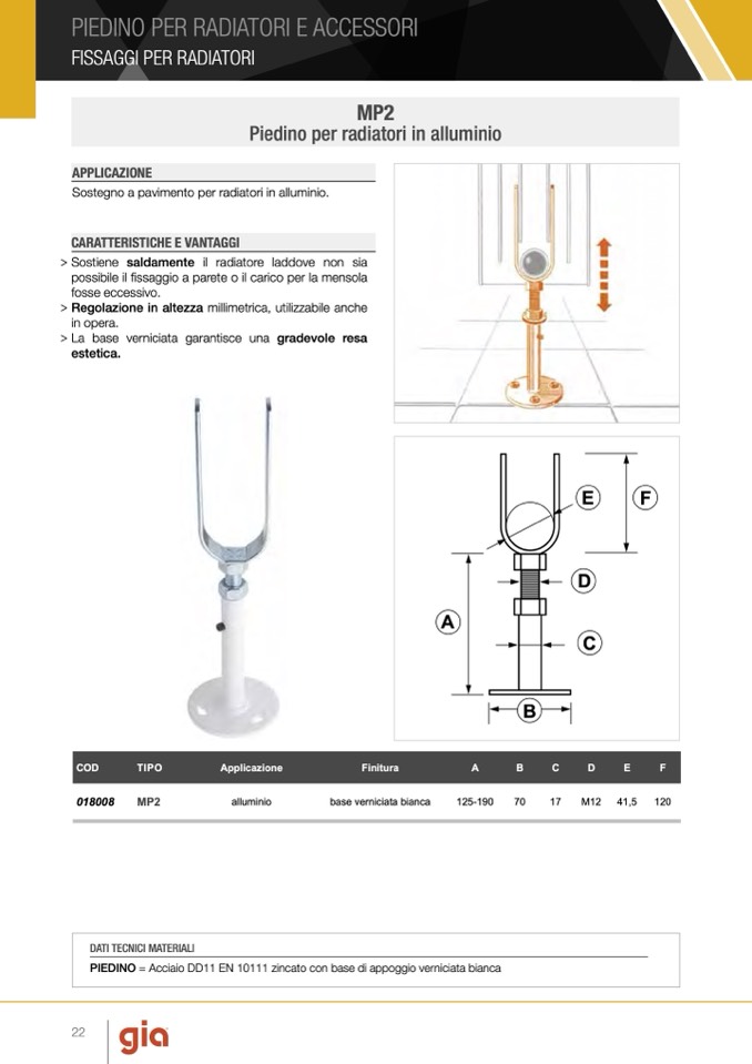 > Regolazione in altezza millimetrica, utilizzabile anche