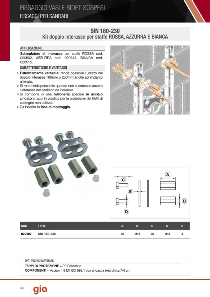 COMPONENTI = Acciaio 4.8 EN ISO 898.1 con zincatura elettrolitica 7-8 μm