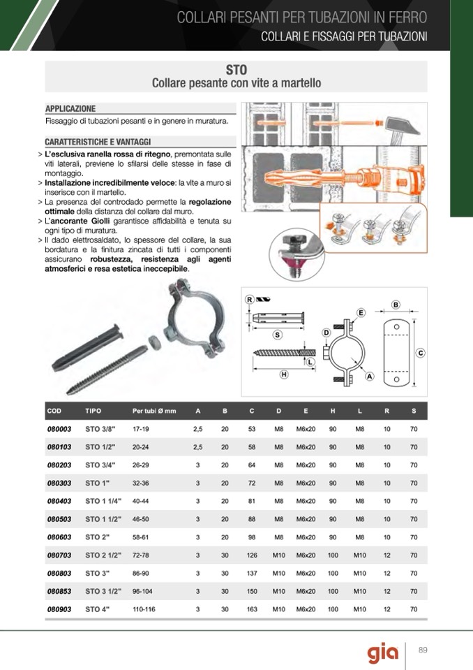 Fissaggio di tubazioni pesanti e in genere in muratura.