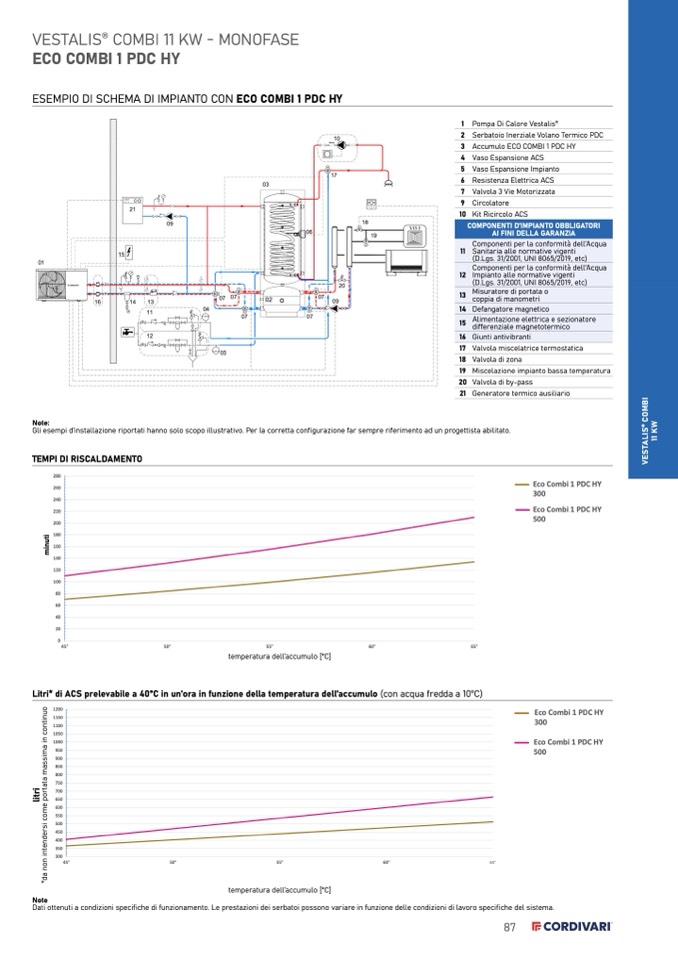 Dati ottenuti a condizioni specifiche di funzionamento. Le prestazioni dei serbatoi possono variare in funzione delle condizioni di lavoro specifiche del sistema.