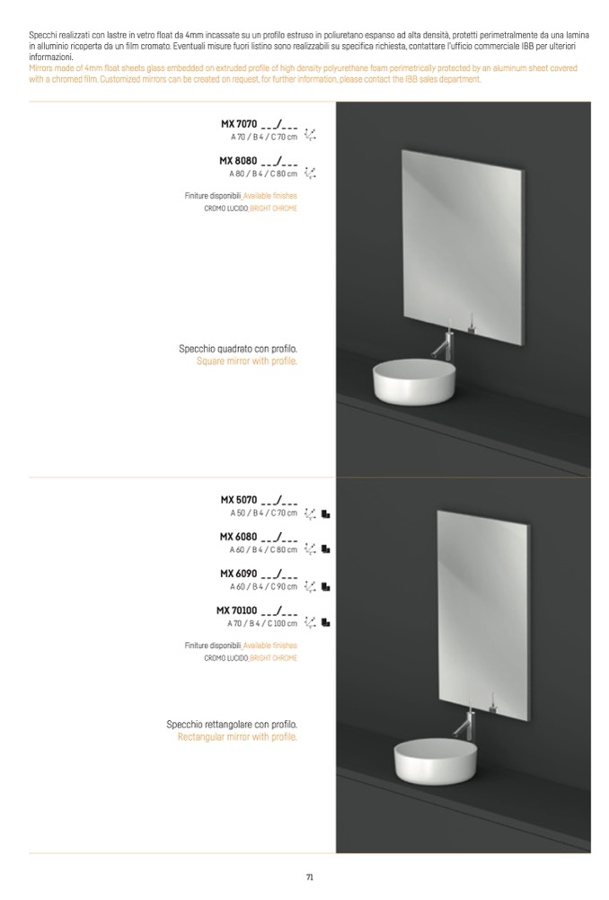 in alluminio ricoperta da un film cromato. Eventuali misure fuori listino sono realizzabili su specifica richiesta, contattare l’ufficio commerciale IBB per ulteriori