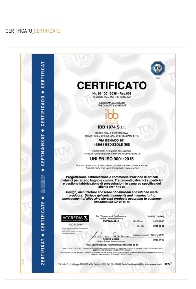 PRIMA CERTIFICAZIONE / FIRST CERTIFICATION: 2015-05-24