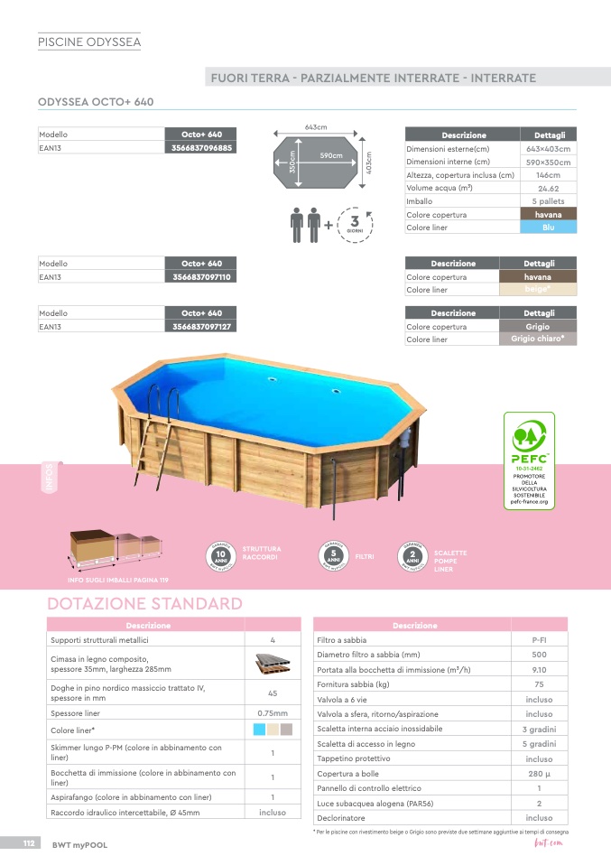 * Per le piscine con rivestimento beige o Grigio sono previste due settimane aggiuntive ai tempi di consegna